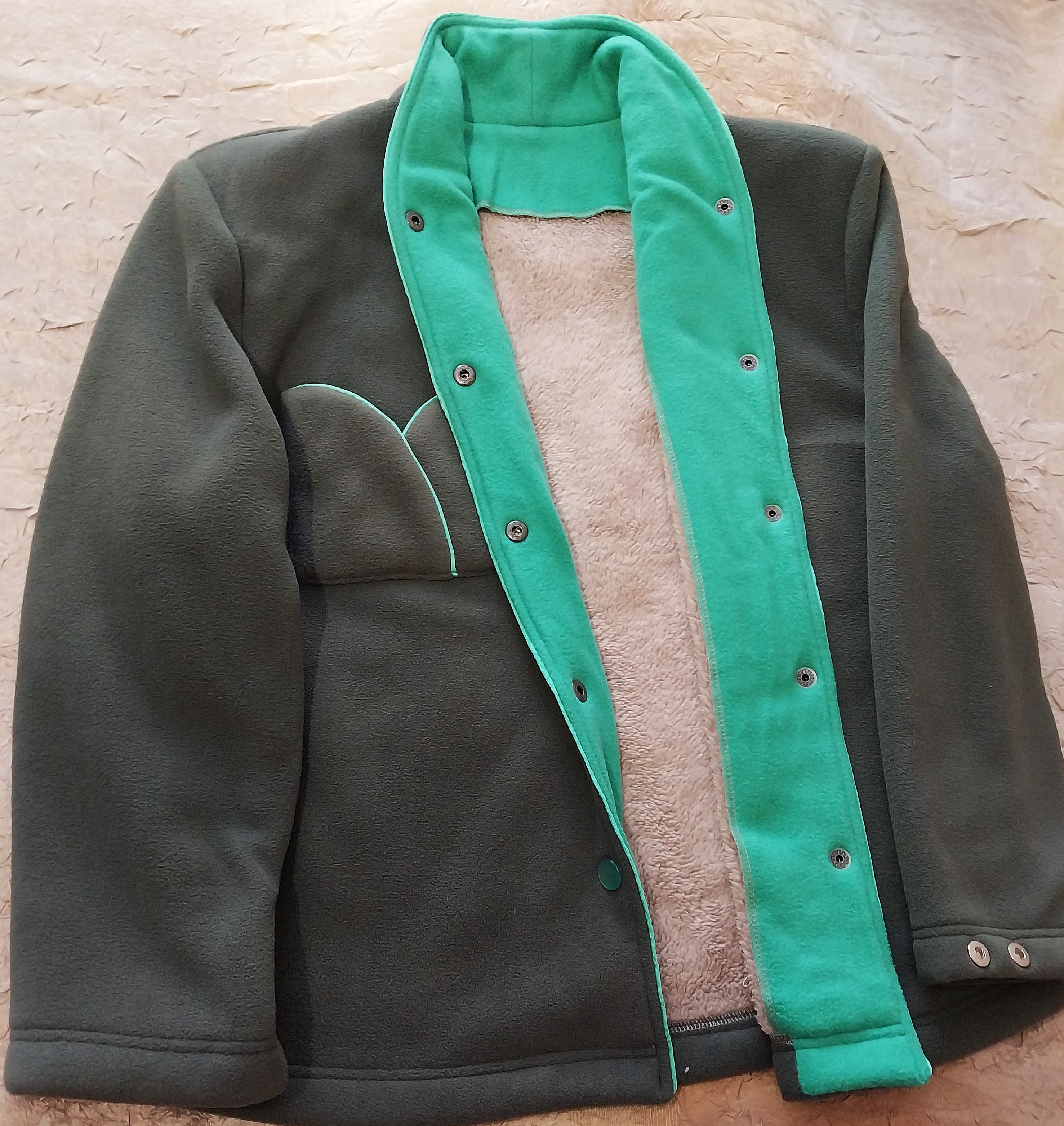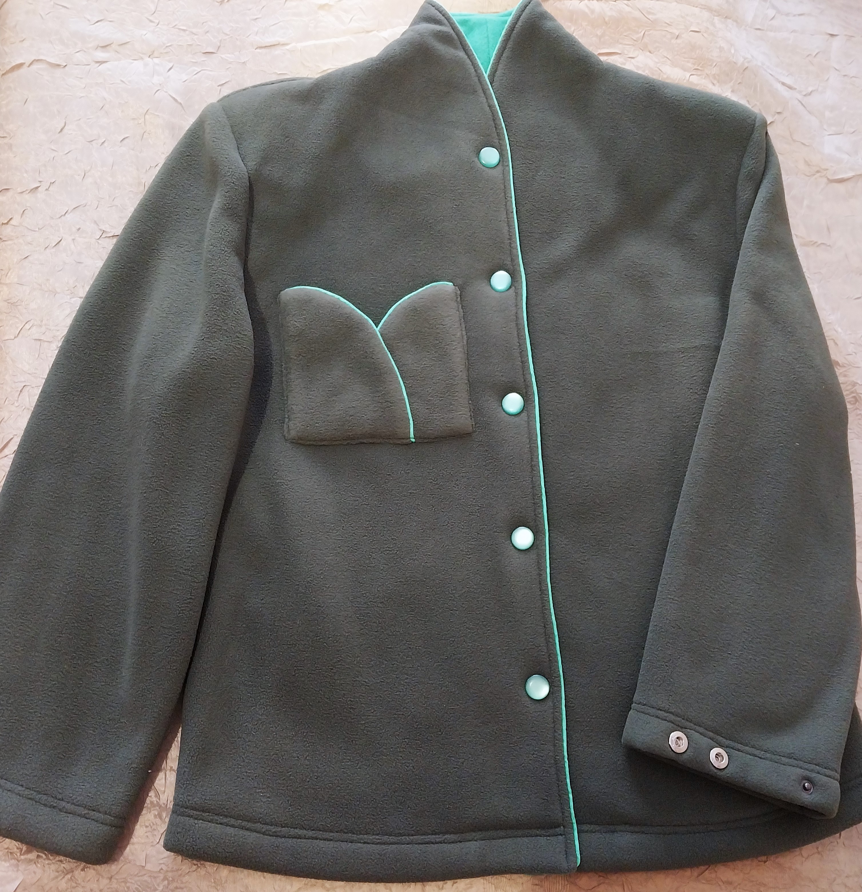 Эффектная отделка воротника в оттенке матча-чай